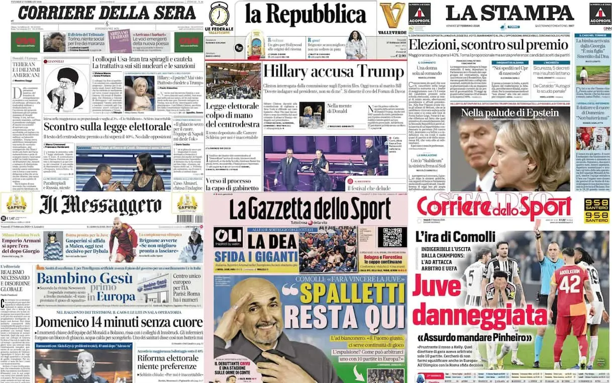 Le prime pagine dei quotidiani di oggi 27 febbraio: la rassegna stampa