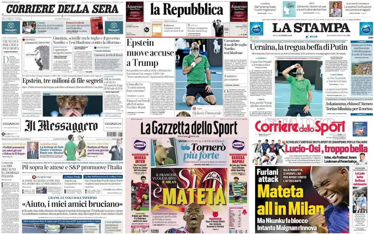 Tanti i temi protagonisti delle aperture dei giornali in edicola. Grosso spazio alla pubblicazione dei nuovi file segreti di Epstein, in cui il nome …