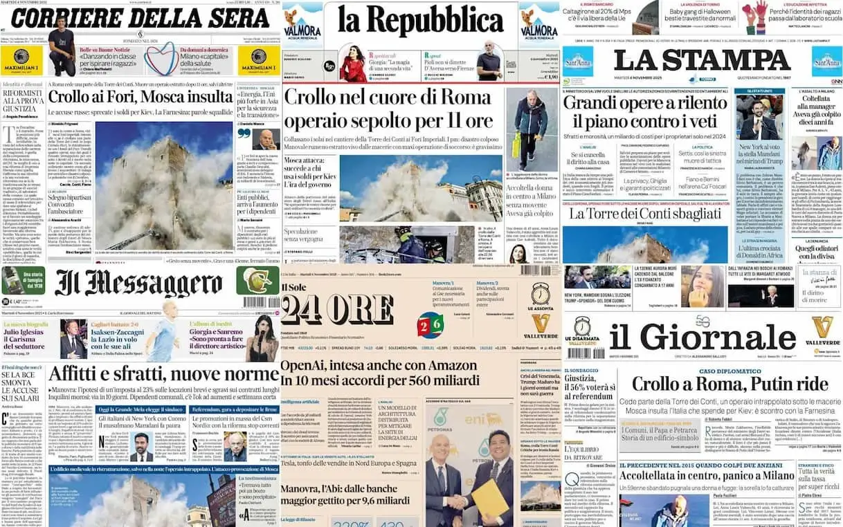 Le prime pagine dei quotidiani di oggi 4 novembre: la rassegna stampa