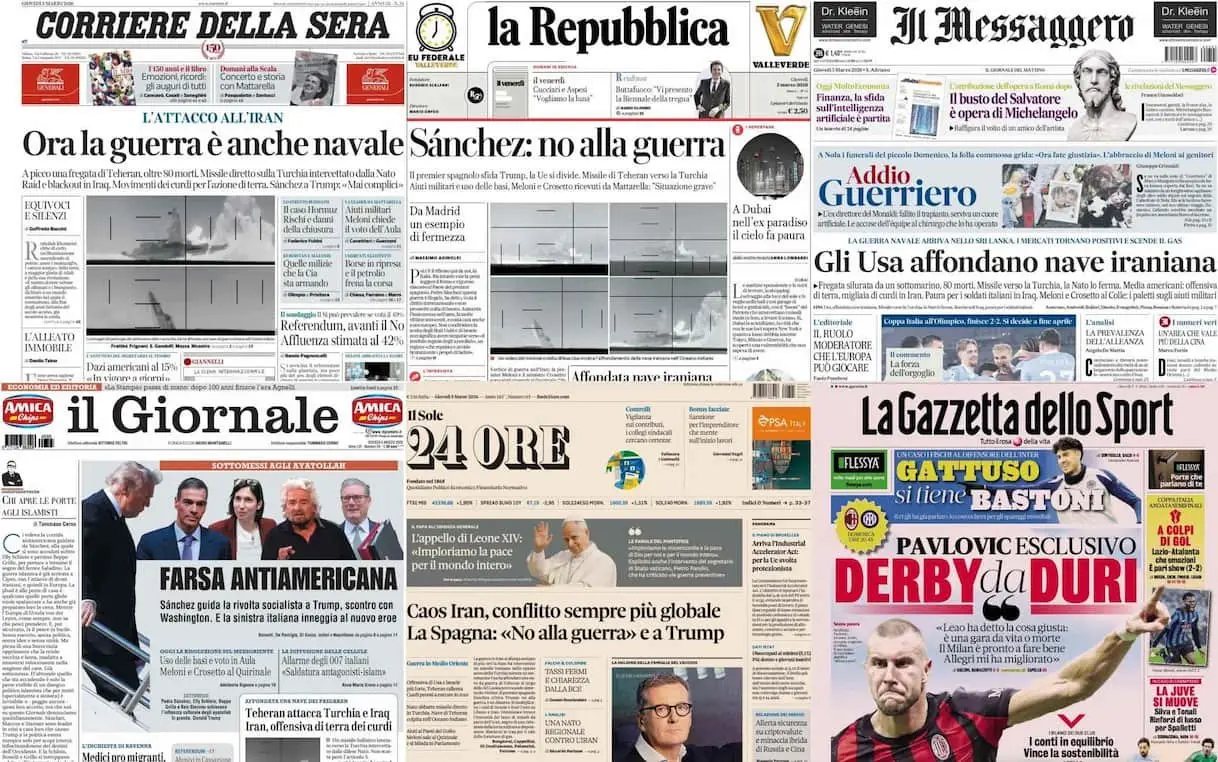 Le prime pagine dei quotidiani di oggi 5 marzo: la rassegna stampa