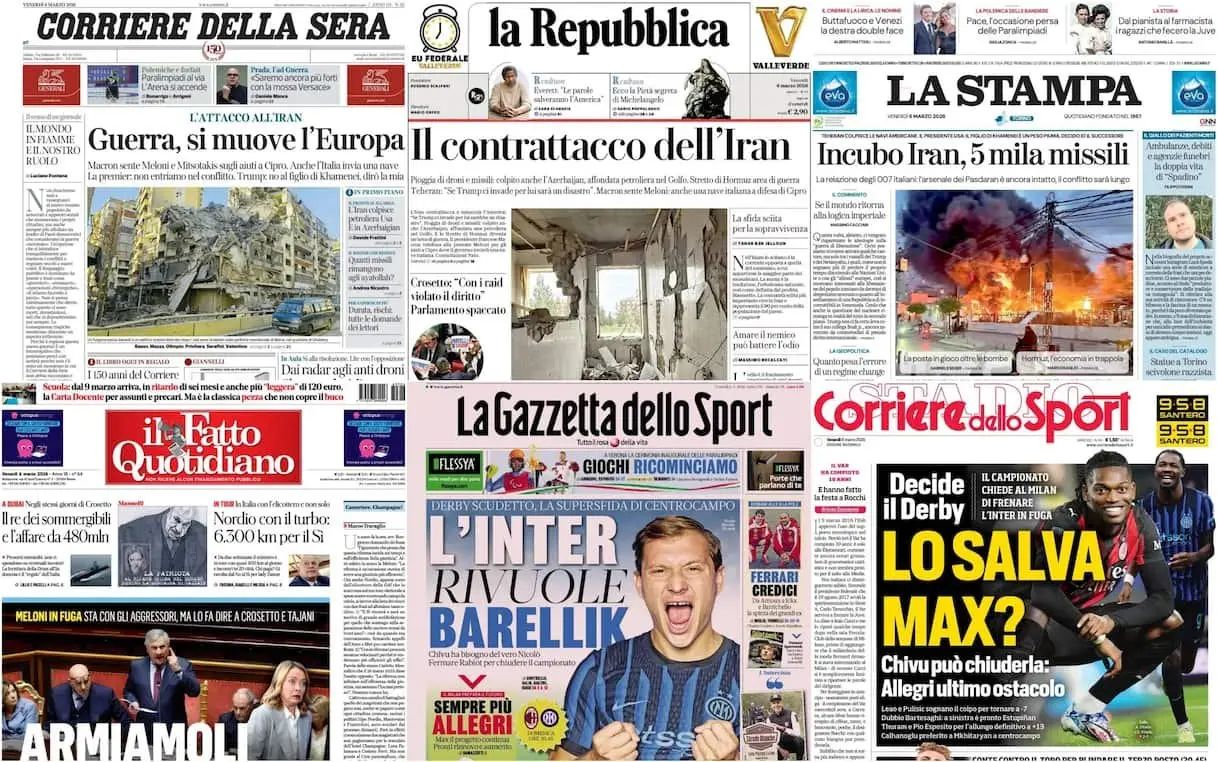 Le prime pagine dei quotidiani di oggi 6 marzo: la rassegna stampa