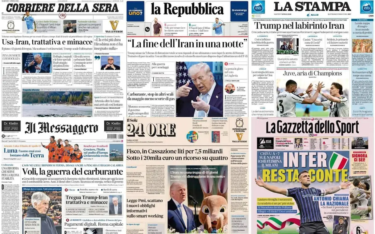 Le prime pagine dei quotidiani di oggi 7 aprile: la rassegna stampa