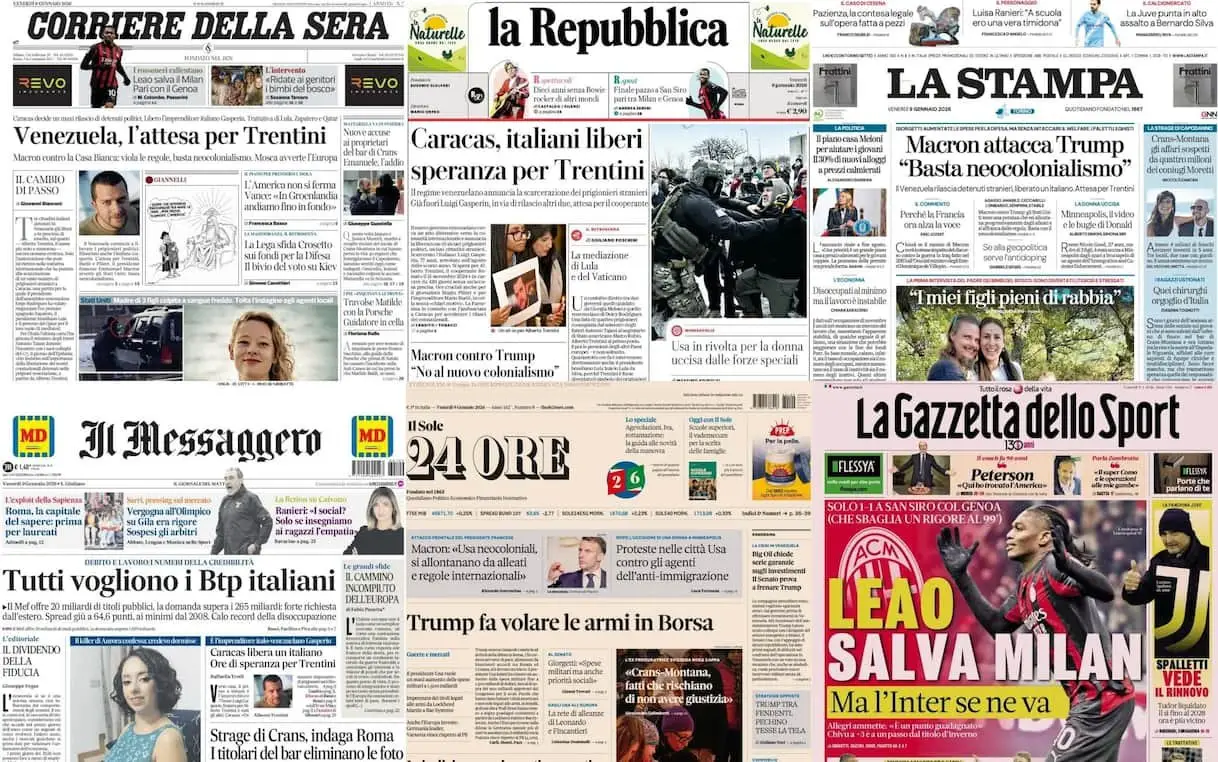 Le prime pagine dei quotidiani di oggi 9 gennaio: la rassegna stampa