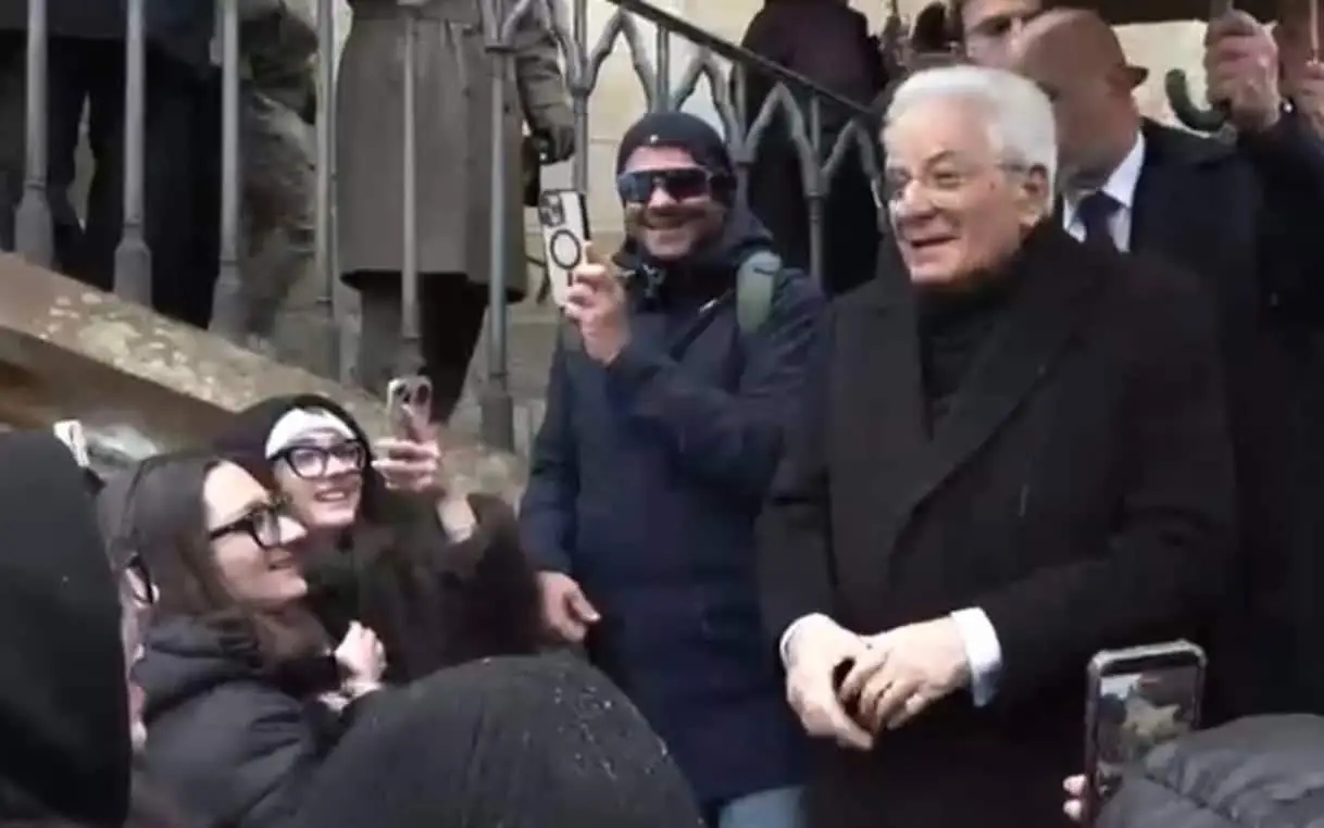Mattarella a Praga incontra studenti italiani durante una passeggiata
