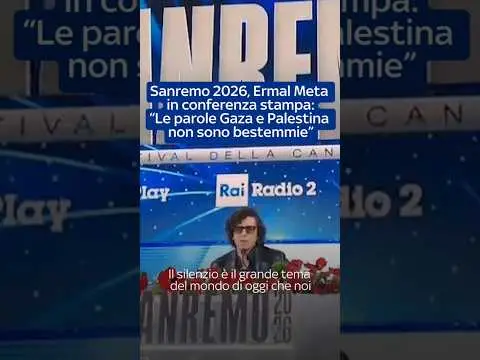 "Stella Stellina affronta il grande problema di oggi, il silenzio”, ha detto Ermal Meta in sala stampa di Sanremo parlando della sua canzone in gara. […] "Soprattutto è un silenzio che ci autoinfliggiamo, certe cose non si possono dire, non si può dire Gaza, non si può dire Palestina, come se fosse una bestemmia. Il fatto che non si possano dire è una bestemmia", ha aggiunto #Sanremo2026 Credits: ANSA Video Per tutte le news visita il sito https://tg24.sky.it Segui Sky tg24 su: • Facebook: https://www.facebook.com/SkyTG24/ • Instagram: https://www.instagram.com/skytg24/ • Twitter: https://twitter.com/SkyTG24