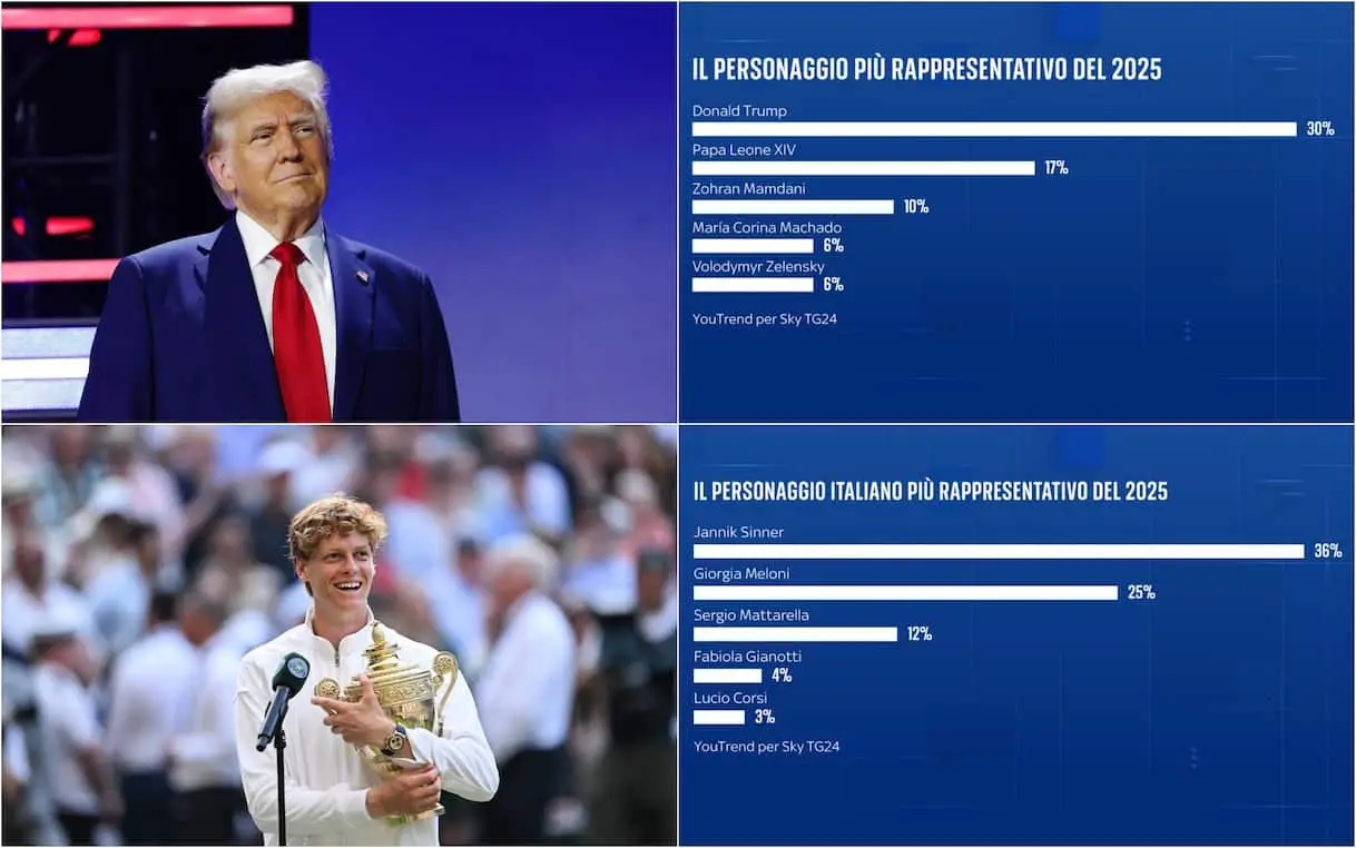Sondaggio, personaggi più rappresentativi del 2025 sono Trump e Sinner