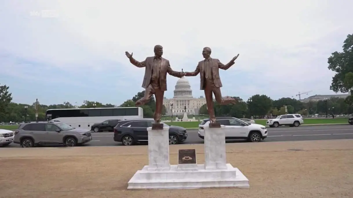 Statua di Trump ed Epstein vicino a Campidoglio a Washington