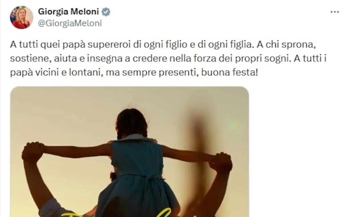 Nel giorno della festa del papà che ricorre oggi, 19 marzo, è arrivato anche un messaggio di auguri, via social, da parte della premier, Giorgia …
