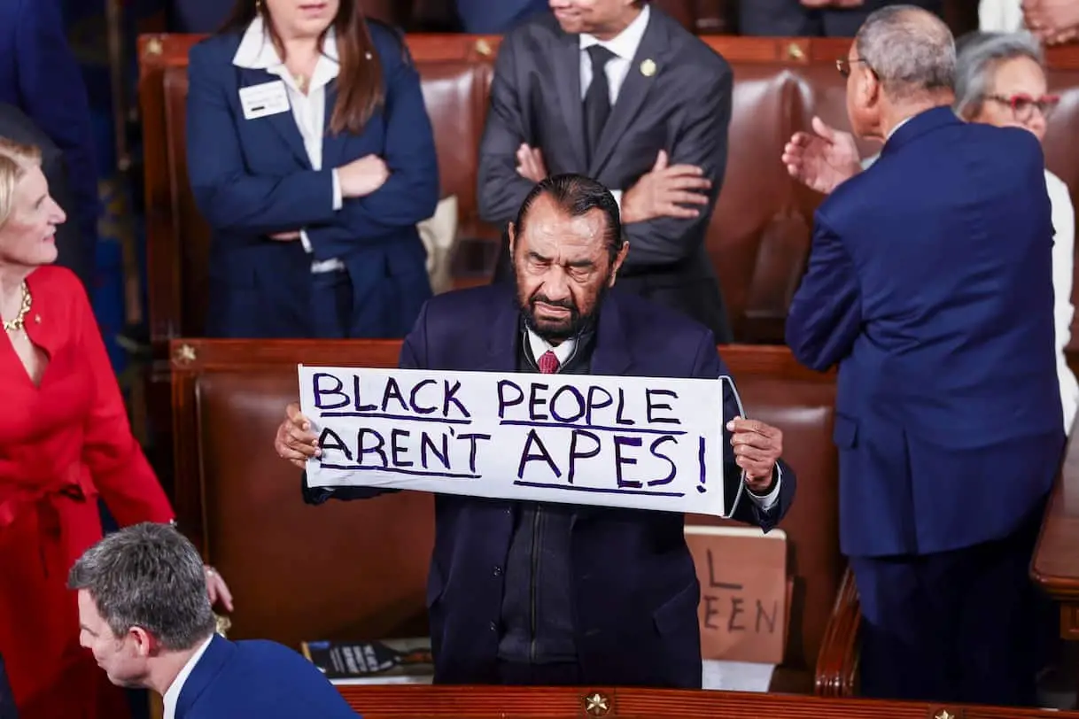 Il deputato democratico Al Green è stato cacciato dal Congresso americano per aver agitato un cartello con su scritto 'I neri non sono scimmie', …